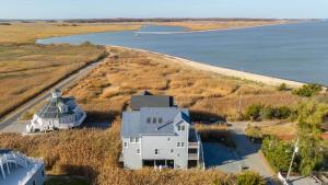 Peace and tranquility with amazing water views! There is a water view from almost every room and deck in the home. This stunning home offers plenty of space for living, entertaining and guests. Enjoy the sunroom/office areas off the main living year round as a quiet retreat on the first floor and second floors both with views! Enjoy the sunset and stars in the loft area or turn it into a game room or media room. On those chilly beach days there is a woodstove on the main living area to cozy up around and a gas fireplace in the primary bedroom to relax by. 217 N Bayshore is located near the end of the road making this home even more peaceful with less traffic. Hardwood floors, tile bathrooms and a spacious kitchen with granite, water view decks and even a dumbwaiter for the groceries are just some of the features of this beach front beauty. JP's restaurant is close by in town a short drive or walk away. For those looking for activity Bowers is a great for walking, biking and kayaking and if boating if your thing you can spend the day fishing and crabbing. The beach is just a short walk away.