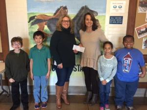 Shown are (l-r) Aiden Hooper; Merritt Burke; Holly Baker, Baker Petroleum; Beth Conaway, Milton Elementary principal; Soana Rodriguez Escalente; and Jayden Burley. SUBMITTED PHOTO