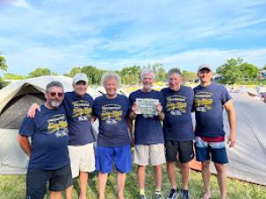 Six adventurers completed an 8-day, 400-mile bike ride along the Erie Canal from Buffalo to Albany, New York. Their evening entertainment included catching up with the happenings of the Cape Region while reading the Gazette. Shown from (l-r) are Mark Valesey, Paul Herman, Dean Johnson, John Dean, Gil Hofheimer and Darren Johnson.