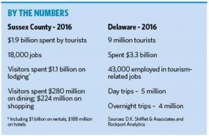Tourism continues to be an economic driver in Sussex County accounting for more than 40 percent – $1.9 billion – of all tourist dollars spent in the state. More than 18,000 people are employed in tourism-related jobs, one in every five jobs in Sussex County.