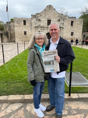 John and Lorrie McCartney of Four Seasons at Belle Terre in Lewes enjoyed reading the Cape Gazette while at the Alamo in San Antonio, Texas, in mid-March. The trip included a visit to see family in Boerne (pronounced Bernie), sightseeing, tasting the local Texas cuisine, and sharing the Cape Gazette so the relatives could read about all the happenings in the “Loo-is area.”
