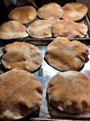Place 2-3 rounds at a time on the hot baking sheets and bake for about 5 minutes, until they puff up like balloons and are slightly brown on top. Repeat until all the rounds have been baked.