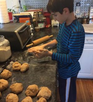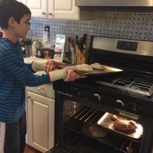 My grandson Jacob makes magic in the kitchen! He fills his house with the sensational aroma of fresh baked bread and the bellies of his whole family with the most delicious whole grain oil free pita! This 11 year old whiz kid uses the precision of his Brown Belt Karate training and the strength of his Parkour performance practice to mix, roll, pat and bake the best batch of pita this side of the Mississippi! Can’t wait for a personal demo (baking, not Karate) in my own home kitchen.