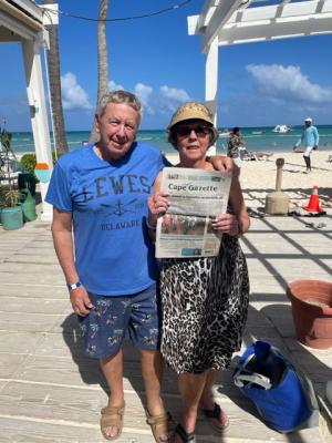 Beth White and Frank Fumagalli of Lewes recently returned from Punta Cana in the Dominican Republic. They thoroughly enjoyed the white sand beaches and turquoise waters, and the wonderful restaurants within walking distance. Beth and Frank took a day trip to the interior and experienced the farmland and rural lives of the locals, and saw cowboys atop horses, herding cattle. Also, they went to the summit of Redondo Mountain. Here they enjoyed breathtaking vistas, and lunch at the rustic restaurant. They had their Cape Gazette with them every step of the way!