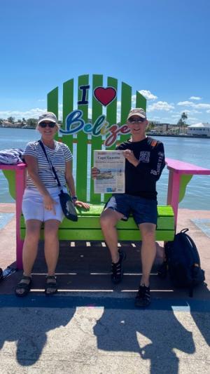 Lee and Heidi Lerch of Harbeson went on an amazing trip to the Western Caribbean this past February. Here they are shown during a stop in Belize. Not only is it nice to catch up on great local news in the Cape Gazette, but it is also fun to show some hometown pride when traveling.