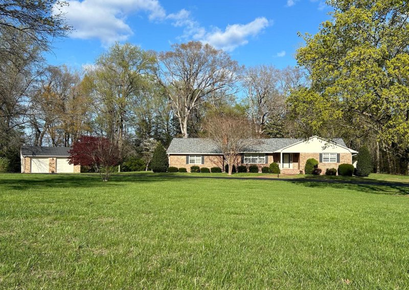 ⭐ This custom all-brick home is located on 5+ acres with a wooded area and streams. It features an eat-in kitchen, an office/sunroom that overlooks the backyard, a full basement, an attached & detached garage, and more!