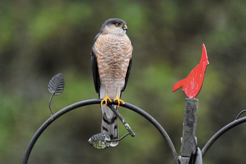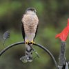 A sharp-shinned hawk perches on a feeder in Walter Mazur’s backyard in Georgetown.