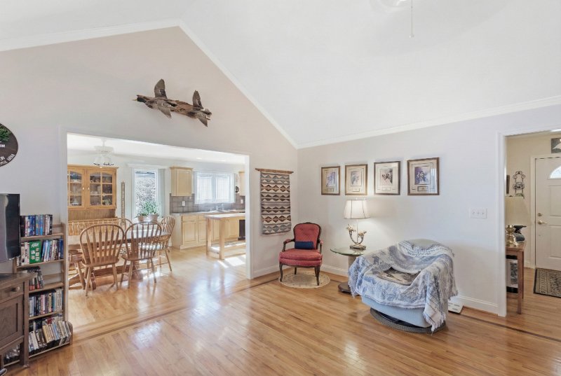 - Open Concept Living: Features gleaming hardwood floors, vaulted ceilings, crown molding, and a cozy propane fireplace—perfect for relaxing evenings.