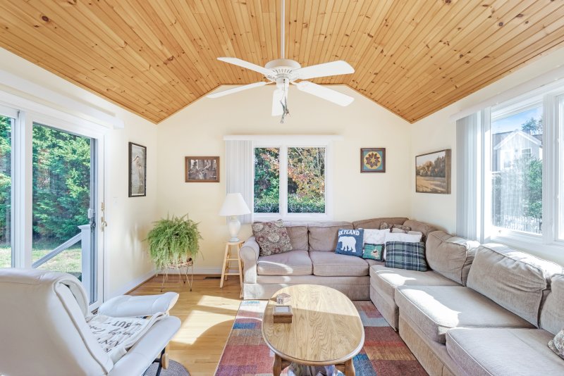 - Standout Sunroom: Elegant French doors lead to a stunning sunroom with a cedar ceiling and sliders that open to your outdoor oasis.