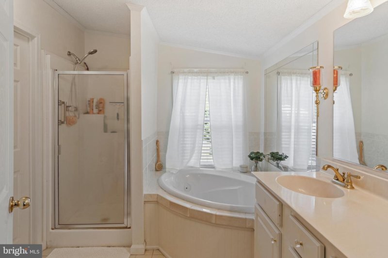 The primary suite serves as a tranquil retreat, offering a spacious layout and a luxurious ensuite bathroom complete with a jet garden tub, step-in shower, and sunny window that fills the space with natural light. Two additional bedrooms provide comfort and flexibility for guests, family, or a home office.