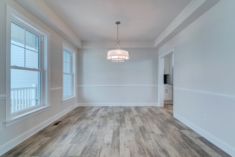 Step inside and the tone is set immediately. A tasteful neutral palette serves as the canvas for over $20,000 in custom trim and lighting upgrades that give this home a level of refinement rarely found in new construction. The formal dining room with chair railing speaks to the kind of craftsmanship that makes everyday moments feel a little more special.