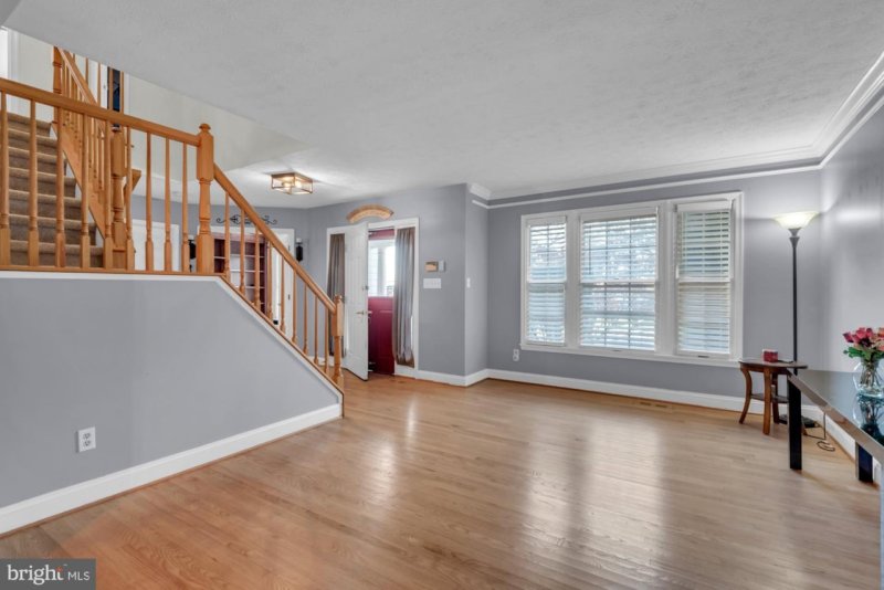Welcome to this beautifully maintained 4-bedroom, 3.5-bath Colonial home in a quiet Owings Mills neighborhood, offering timeless curb appeal and warm, inviting interiors. A landscaped front yard sets the tone as you step into a spacious living room featuring gleaming hardwood floors and a soft, neutral color palette that flows throughout the home. The traditional layout includes a formal dining room—perfect for gatherings—and a private library/home office accessed through French doors off the foyer, complete with built-in shelving.