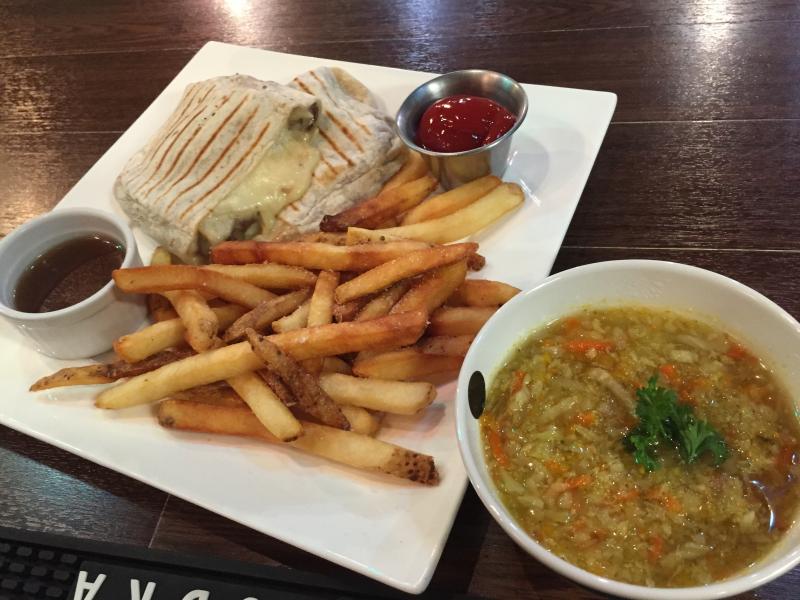 Buy any of the Burritos and get a cup of Veggie Soup!