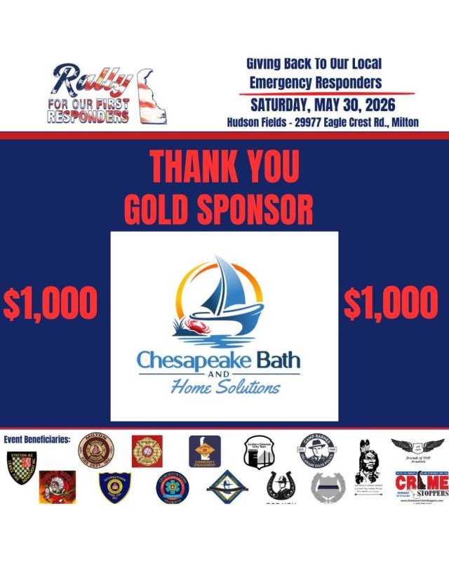 A BIG thank you to Chesapeake Bath & Home Solutions for jumping on board as a Gold Sponsor ($1,000) for the 5th Annual Rally For Our First Responders! 🇺🇸