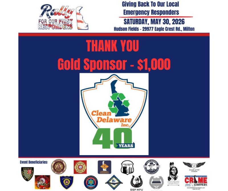 A huge THANK YOU to Clean Delaware Inc for coming aboard as a Gold Sponsor ($1,000) for the 5th Annual Rally for Our First Responders! Your support helps us continue honoring and uplifting the brave men and women who serve our communities every day.