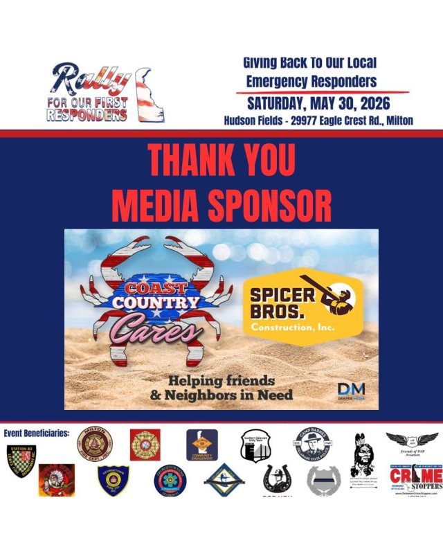 A big THANK YOU to Coast Country 103.9 & 106.3 / Spicer Brothers Construction LLC. for coming aboard as our Lead Media Sponsor for the 4th Annual Rally For Our First Responders! 🇺🇸