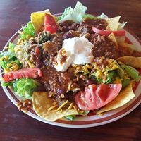 Taco Salad w/ our savory Angus taco beef over a bed of tortilla chips, lettuce and topped with tomatoes, onions, cheddar cheese and served with sour cream & our home made salsa.....$9.00
