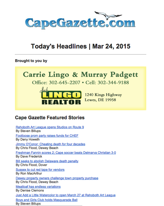With new and exciting things happening everyday in the Cape Region, it is easy to fall behind. Be sure you never miss a story again and sign up for the CapeGazette.com Daily Headlines and Breaking News email.