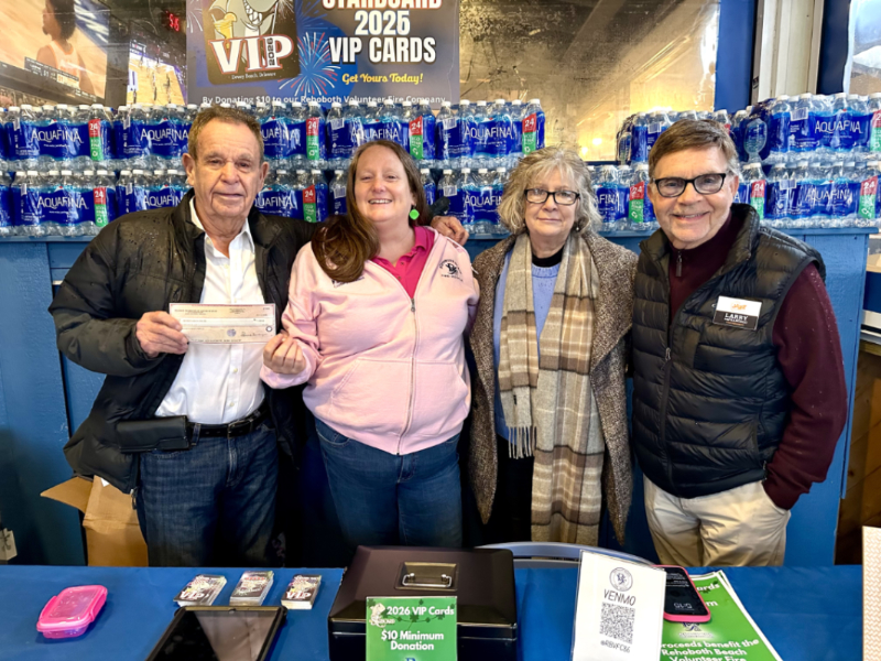 At the recent RB-DB Chamber of Commerce “Business After Hours” event at the Starboard in Dewey Beach, Delaware Celebration of Jazz made a donation to the Rehoboth Beach Volunteer Fire Company.