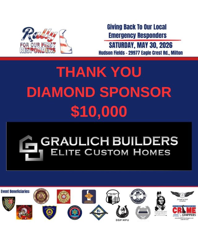 Please join us in welcoming and thanking Graulich Builders for coming aboard as a Diamond Sponsor ($10,000) for the 5th Annual Rally for Our First Responders!
