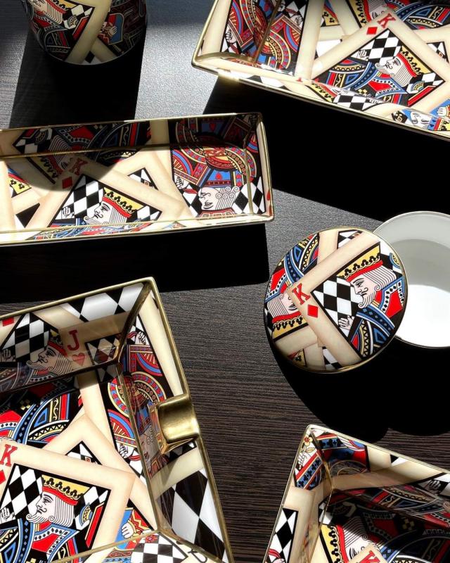 These English fine bone china round trinket boxes and trays capture the playful colour of games night and will make an eye-catching addition to any card table or interior. The perfect place to store your winnings after a successful game of poker.