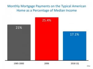 Zillow recently released a report comparing home affordability over the decades using this formula. The report revealed that, though homes are less affordable this year than last year, they are more affordable today (17.1%) than they were between 1985-2000 (21%). Additionally, homes are more affordable now than at the peak of the housing bubble in 2006 (25.4%). Attached is a chart of these findings.
