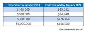 For example, let’s assume a young couple purchases and closes on a $250,000 home in January. Simply through their home appreciating in value, those homeowners can build their home equity by nearly $40,000 over the next five years.