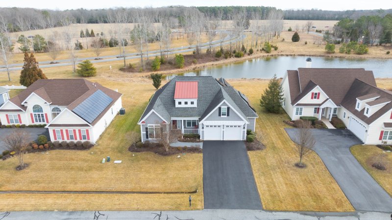 POND FRONT stunner is the deal you have been waiting for! Discover the perfect blend of luxury, comfort, and community in this stunning ranch-style home located in a premier, social 55+ neighborhood. The heart of the home is designed for both easy daily living and elegant entertaining. Host holiday gatherings in the formal dining room, or enjoy casual mornings in the bright eat-in kitchen. Transition seamlessly to the inviting sunroom, where wall-to-wall windows frame tranquil, unobstructed views of common area and a community pond with a fountain in warmer months! Flexible Bonus Room upstairs provides generous space perfect for a home office, den, craft studio, or guest retreat. More surprises in store with a rare, dedicated hobby room attached to the garage—a dream come true for creators and crafters. Current residents use it for woodworking. Enjoy peaceful afternoons overlooking the water from your private vantage point either from the comfort of the indoors through a picture window or from the outdoor patio. New HVAC, new dishwasher, owned solar, private irrigation well and DE co-op all work together to help keep those utility bills down. Situated in a vibrant, social 55+ community, you’ll have endless opportunities to connect with neighbors while enjoying a home that truly caters to your passions. Lawn care, indoor pool, dog park, community garden, and pickleball are just a small hint of what's available to you. Centrally located with easy access to Long Neck, Rehoboth, Lewes and Milton. Don’t miss your chance to own this one-of-a-kind retreat!