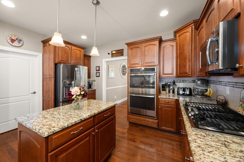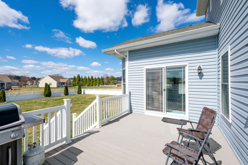 Nestled in the charming community of Ridings at Rehoboth, this beautifully maintained contemporary home offers the perfect blend of comfort, space, and modern living. Featuring 5 spacious bedrooms and 3 full bathrooms, this extended model with bump-outs provides exceptional flexibility for a variety of living and entertaining needs. Thoughtfully designed, the open floor plan is filled with natural light from abundant windows and enhanced by engineered wood flooring, crown molding, and window treatments throughout. The heart of the home is the inviting kitchen, complete with a large island, stainless steel appliances, double wall oven, and ample cabinetry for storage. The kitchen flows seamlessly into the living and dining areas, including a formal dining room, creating an ideal setting for both everyday living and gatherings. A cozy fireplace anchors the main living space, while additional features such as a central vacuum system, ceiling fans, and main-level laundry add everyday convenience. The spacious primary suite offers a relaxing retreat with a walk-in shower, while all five bedrooms provide versatility for guests, work-from-home needs, or additional living space. Step outside to the expansive 0.45-acre property, where a fully fenced backyard with a 6-foot privacy vinyl fence creates a private outdoor setting. Enjoy the deck for entertaining or relaxing, along with the added benefit of an irrigation well and underground lawn sprinkler system to maintain the beautifully landscaped grounds. The home also features a roof that is just 4 years old with 50-year architectural shingles, offering added peace of mind. Located in an active community with a variety of amenities, including an outdoor pool, community space for clubs/gatherings/meetings, and a fitness center; residents enjoy a vibrant yet peaceful lifestyle. With 24-hour security and ample driveway parking, this home offers the perfect combination of space, functionality, and community living in a sought-after location.