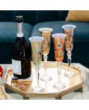 Ornate emblems and decorations that are indicative of royalty inspired this unique drinkware collection. These Regalia Champagne Glasses are handpainted in 14-karat gold. Store Hours: Mon-Sat 10-5, Sun 11-3. Follow us on Facebook and Instagram.