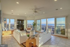 Welcome to Fenwick Acres—your ocean front coastal retreat and the perfect place to experience sunrise each morning. A welcoming second-level foyer opens to unobstructed ocean views and introduces an open-concept living space designed for comfort and entertaining. The gourmet kitchen features abundant counter space, granite countertops, high-end stainless appliances, a center island, and an additional island with bar seating. It flows seamlessly into the dining room and great room, where four sets of sliding glass doors open onto an expansive oceanfront deck—an idyllic spot to watch the sun rise over the Atlantic and feel the ocean breezes. The great room includes a propane fireplace and a wet bar with refrigerator and icemaker. Just off this space is a versatile room ideal for a home office or den. At the front of the home, a separate living room offers built-ins and sunset views. Behind the main kitchen, a fully equipped catering kitchen—with two wall ovens, refrigerator, dishwasher, and laundry area—makes hosting effortless. This level also features a bedroom, full bath, powder room, and elevator access. The top floor is dedicated to an exceptional owner’s suite with sweeping ocean views. The suite includes a spacious bedroom, sitting room, private deck access, two full owner’s bathrooms, and two walk-in closets. The deck has a spiral staircase to deck below. Three additional en suite bedrooms, a laundry chute, and elevator access complete this level. The ground-level foyer leads to a storage room, mechanical room, oversized garage, laundry room, and a private in-law suite featuring a bedroom, full bath, and family room with kitchenette. Outdoor living is enhanced by two outdoor showers—perfect after a day on the beach. Community beach dune access path at beginning of the community for easy beach access. Built with quality craftsmanship by Bob Purcell of Beachwood Builders, this home includes geothermal heating and cooling, a tankless water heater, extra insulation, generator hook-up, Andersen 400 windows and doors, and numerous other upgrades. With 6 bedrooms, 7.5 baths, three kitchens, three living areas, and two expansive oceanfront decks, there is ample room for family and friends to enjoy the ultimate beachfront lifestyle. Experience the best of oceanfront living in Fenwick—moments from dining, shopping, golf, bike trails, boating, and more. Start living your dream coastal life today. Be sure to take the video tour!
