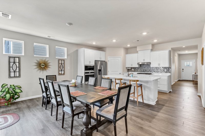The second new listing builds on the same modern coastal layout—this time with a full second-floor suite. The first-floor Primary Bedroom features a walk-in closet and double vanities, while the open kitchen and LVP-lined living area create effortless flow. An office, two more bedrooms, and a full hall bath complete the main level. Upstairs, a spacious loft, additional bedroom, and full bath provide ideal guest or bonus space. A covered patio and two-car garage round out the offering.