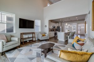 Built in 2023, this nearly new 4 bedroom, 3.5 bath home has been lightly used as a second home and offers approximately 2,370 square feet of thoughtfully designed living space. Ideally positioned along the 12th hole with sweeping fairway views you will enjoy stunning golden sunsets thanks to its desirable southwestern exposure. The flexible floor plan features two spacious primary suites, one on each level, both offering walk in closets, quartz counters, tiled showers, and serene golf course views. A spacious loft bonus room provides additional space for a home office, media room, or guest retreat. The main living area is filled with natural light and highlighted by vaulted ceilings and LVP flooring. The gourmet kitchen is well appointed with quartz countertops, a gas cooktop, stainless steel appliances, abundant cabinetry, and generous storage. The home is equipped with several smart home features, high efficiency HVAC, natural gas, and energy efficient appliances for added comfort and convenience.