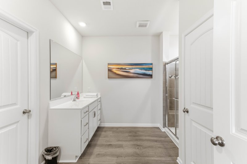 - First-Floor Living: Features a primary suite on the main level with an ensuite bath, walk-in closet, and dual vanities.