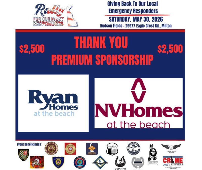 We would like to give a huge THANK YOU to Ryan Homes at the Beach and NVHomes at the Beach for jumping on the Sponsor Train and supporting the 5th Annual Rally for Our First Responders!