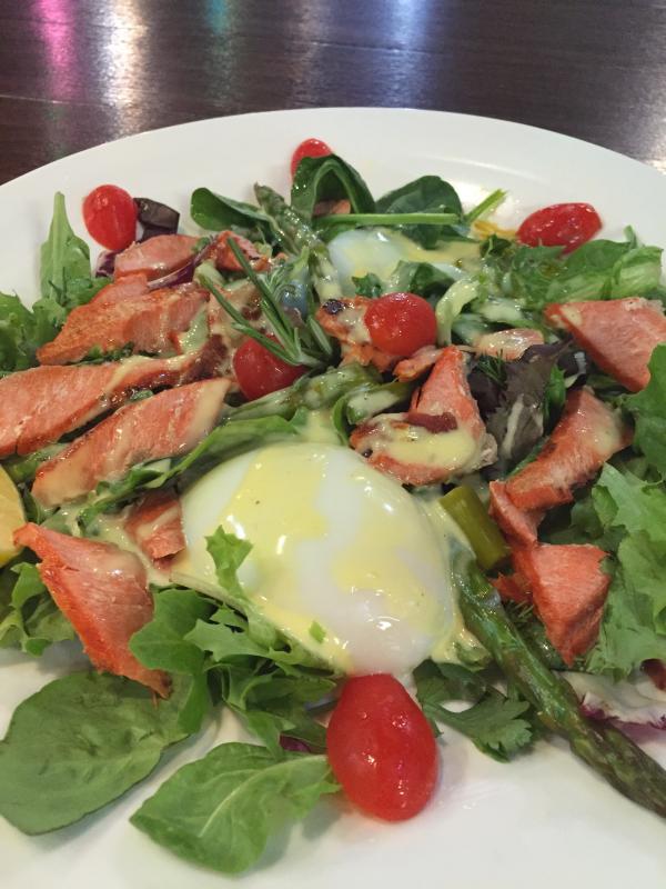 Salmon Benedict Salad with perfectly poached eggs