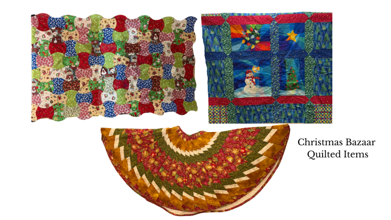 As part of the first annual bazaar, the church will be auctioning off several beautiful quilted items including 2 quilts, a Christmas tree skirt, and a table runner. You could be the owner of one of these treasures by participating in a silent auction; Bid sheets will be available after church services, and at the Bazaar on Saturday, December 6. Bidding will finish at 2 pm at the end of the Bazaar. Proceeds from the auction of these items will be used towards the kitchen fund.