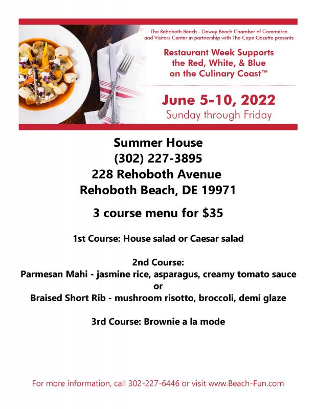 Summer House - Culinary Coast Restaurant Week Menu 2022