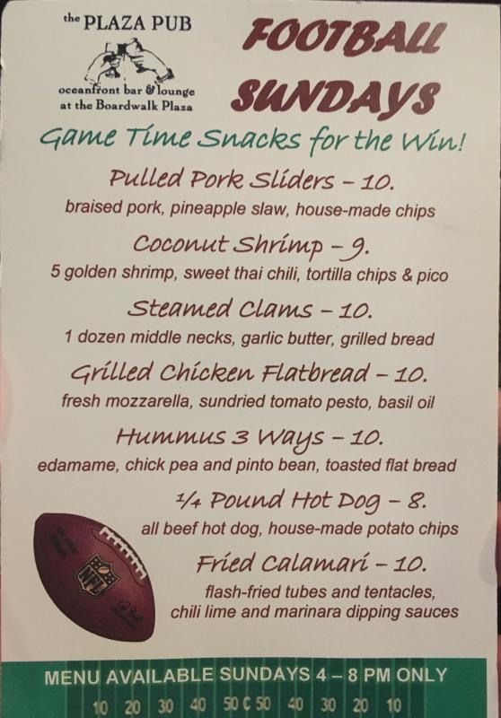 Join us every Sunday for Brunch from 11-3 pm. $5, $10 & $15 Entrees with $3 Mimosa & Bloody Mary. Visit The Plaza Pub for your local games. Football specials from 4-8 pm - $5 Wine, $4 Draft Beer, $2.50 Domestic Bottles & $3.50 Rail Drinks & special menu.