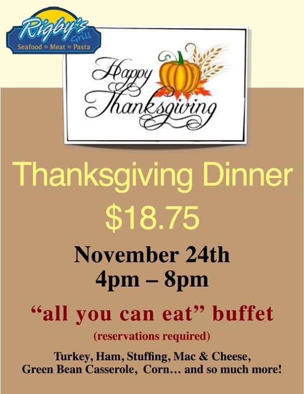Thanksgiving Dinner Buffet at Rigby’s Grill..18.75