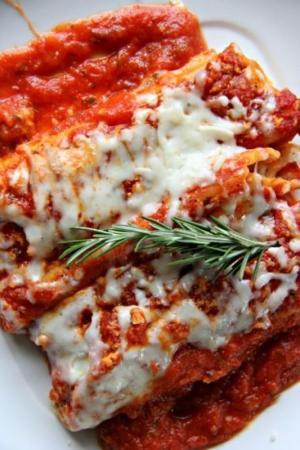 Manicotti & Italian Sausage in the Dining Room or at the Bar