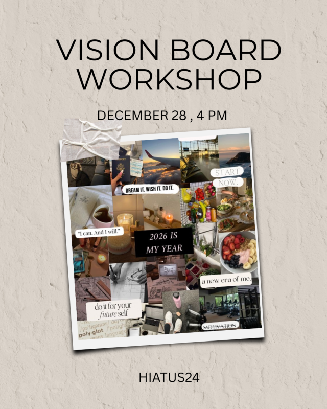 As we get ready to welcome a fresh new year, I’m hosting a Vision Board Workshop at Hiatus 24 — a warm, inspiring afternoon to dream big and design the year of your dreams.