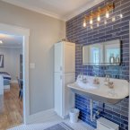 Two first-floor ensuite bedrooms offer private accommodations, each with spa-inspired baths. Closets are professionally finished, with shelving and lighting for added convenience.
