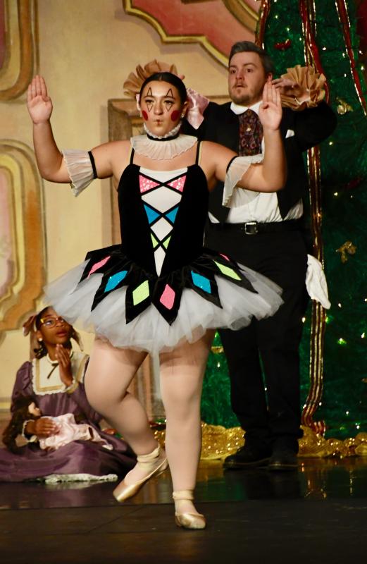 The Columbine Doll, portrayed by Summer Frusco, is wound up and ready to dance during the Stahlbaum’s Christmas party.