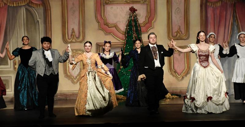Herr Stahlbaum, portrayed by Kole Loftin, and Frau Stahlbaum, portrayed by Maddy Sickler, dance during their opening-scene Christmas party.