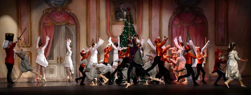 The entire Cape High stage is filled with fighting soldiers and mice as the Nutcracker takes on the Mouse King.