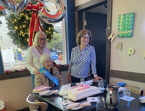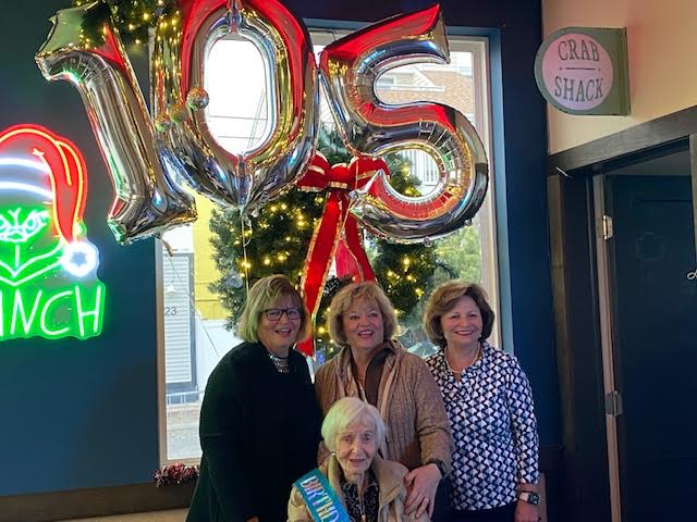 She celebrated at Starboard Claw with several of her friends and neighbors, including Mayor Bill Stevens, and her loved ones, including three of her four daughters and several granddaughters.