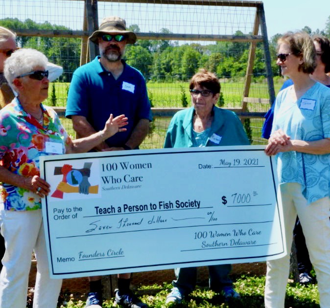 The Founders Circle of 100 Women Who Care Southern Delaware recently presented a $7,000 donation to Teach a Person to Fish Society, a local nonprofit whose mission is to make sustainable use of natural resources to support those in need in southern Delaware.