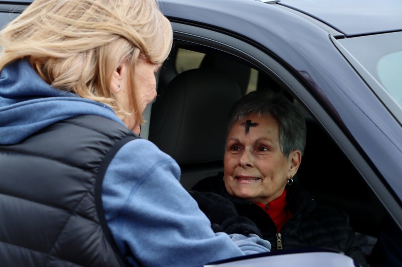 This year, nine cars came by; a total of 16 people got ashes on their foreheads.