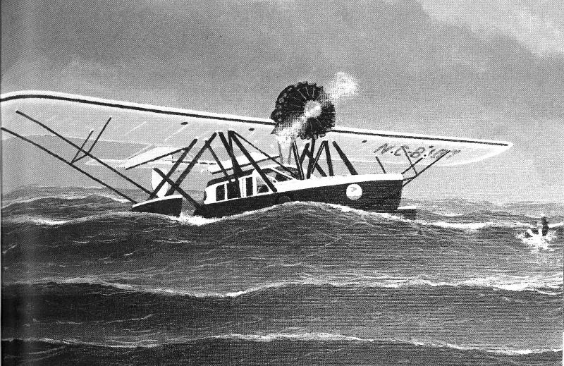 Unable to take off as the wing filled with water, Sharp taxied through the choppy ocean and Edwards crawled out on the undamaged right float to balance the plane as they awaited rescue.